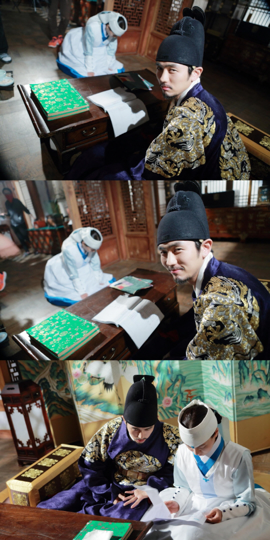 최근 공개된 사진 속 임슬옹은 개구쟁이와 같은 표정을 지어 보여 극 중 진중한 왕세자 이호와는 또 다른 매력을 발산했다. 또 쉬는 시간 도중 송지효와 대본을 함께 보며 연기 호흡을 맞추고 있는 사진에선 배우로서의 성실한 모습을 엿볼 수 있다.