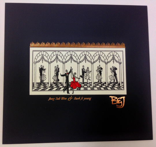 공개 된 청첩장에는 백지영과 정석원의 이니셜을 딴 B&J 이라는 골드 로고가 눈에 띄며 즐거운 파티 분위기의 배경에 백지영과 정석원이 많은 커플들 속에서 탱고를 추는 듯한 모습을 그림으로 표현한 청첩장은 결혼을 앞둔 예비 부부의 설레임과 즐거움을 표현한 듯 해 시선을 사로 잡는다.