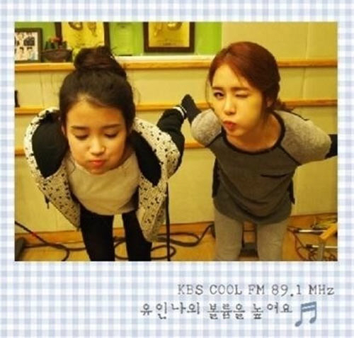 이에 최근 한 온라인 게시판에 두 사람의 귀여운 인증샷이 공개됐다. 유인나가 진행하는 라디오 KBS 2FM '유인나의 볼륨을 높여요' 스튜디오에서 담은 장난기 가득한 모습이다.