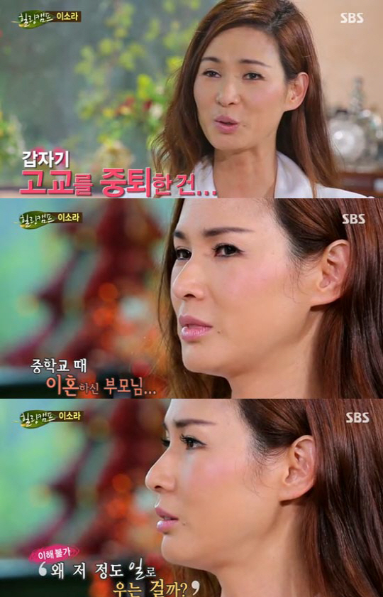 이날 방송에서 MC이경규는 "고등학교 다니다가 그만뒀죠, 중퇴한거에요? 자퇴한거에요?"라며 돌직구 질문을 던졌다. 이에 이소라는 "부모님이 제가 중학교 때 이혼을 하셨다. 그때는 저도 어렸고 굉장히 힘들었다"며 말문을 열었다. 그는 "드라마를 볼 때 슬픈 장면이나 힘든 장면에서 사람들이 우는 모습을 보면 '저 사람들은 저 정도 일로 왜 많이 울지?'라며 이해가 되지 않았다"며 당시의 힘들었던 상황에 대해 전했다.