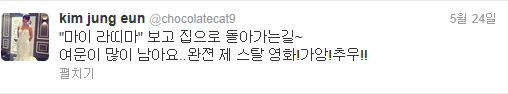 배우 김정은이 '마이 라띠마' 시사후 감상평을 자신의 SNS에 남겼다. 사진제공=김정은 트위터