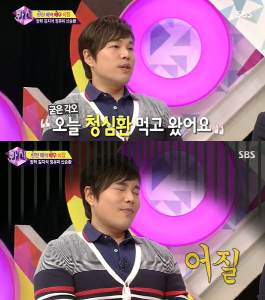 이에 신승환은 "아침에 청심환을 먹고 왔다"고 말하자 김구라는 "우리가 신승환씨에 대한 기대치가 별로 없다"며 독설을 날렸다. 이어 김구라는 "장혁과 김지석에게 빼 먹으면 된다"며 "기대치가 없으니까 편안하게 하면 된다"고 신승환을 놀려댔다.