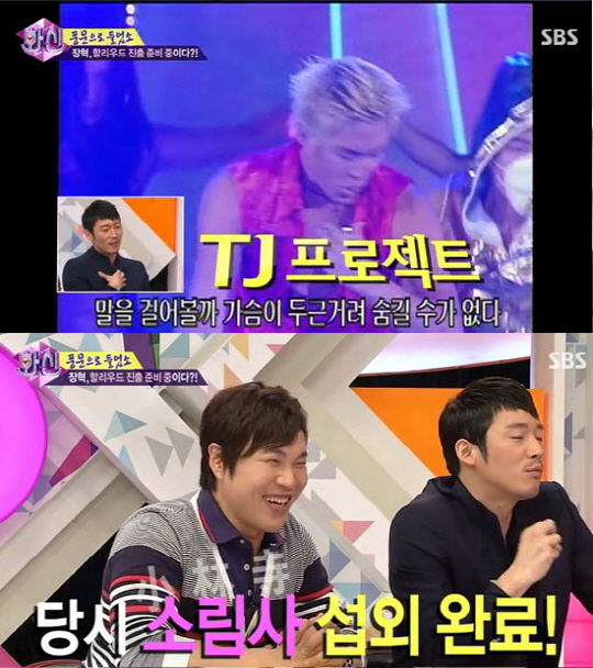 이에 MC김구라는 "TJ가 뭐의 약자냐"고 묻자 당황한 표정을 지어보인 장혁은 "'Team과 Jang Hyuk'의 약자다" 고 말해 폭소케 했다.