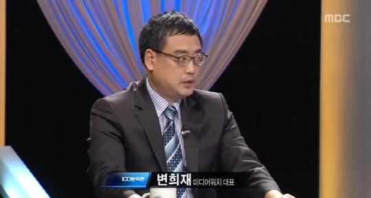 28일 방송된 MBC '100분 토론'에서는 '일베 그리고 표현의 자유! 어디까지'라는 주제로 변희재 대표를 비롯해 진성호 전 국회의원, 이재교 변호사, 곽동수 숭실사이버대 교수, 이호중 서강대 교수, 이택광 경희대 교수가 출연해 최근 논란의 중심에 놓인 극우 성향 인터넷 사이트 '일간베스트 저장소(이하 일베)'에 대한 열띤 토론을 펼쳤다.