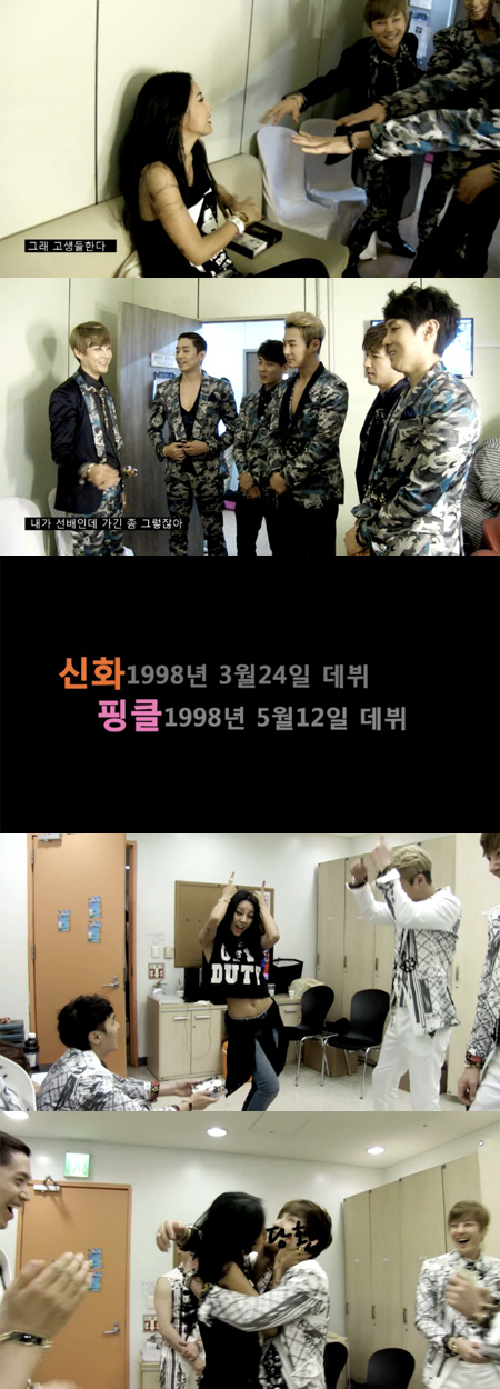 신화는 데뷔 한 달 선배로 알고 있던 이효리의 대기실을 찾아가 공손히 인사를 했고, 이효리는 앉아서 "신화 왔니? 고생들 한다"라며 여유롭게 인사를 받았다. 이효리는 신화 멤버들이 음반을 요구하자 "나 한정판밖에 없어서 일반판 나오면 주겠다. 내가 선배인데 가긴 좀 그러니까 받으러 오라"며 선배의 위엄을 과시했다. 또한 이효리는 인사를 끝낸 신화 멤버들이 대기실을 떠나자 받았던 음반을 소파에 던져 폭소케 했다.