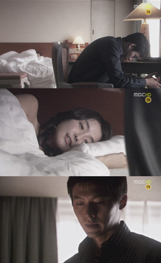 이 베드신 장면은 노출 수위가 그다지 높지 않았다. 동수는 호텔방을 나가기 위해 옷을 입었고 누워있는 은지가 묘사 되는 것으로 그려냈다. 또한 극중 홧김에 은지와 하룻밤을 보낸 동수에게 은지는 "안다. 네가 왜 그랬는지"라는 말로 미안해하는 동수를 위로하며 현빈과의 러브라인을 그렸다.