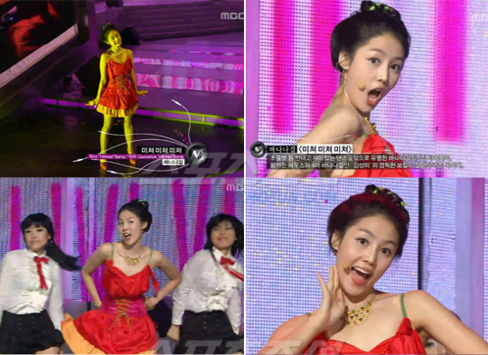 | 짝 여자1호, 바나나걸 김상미 2008년 MBC '쇼! 음악중심' 출연 시절 |