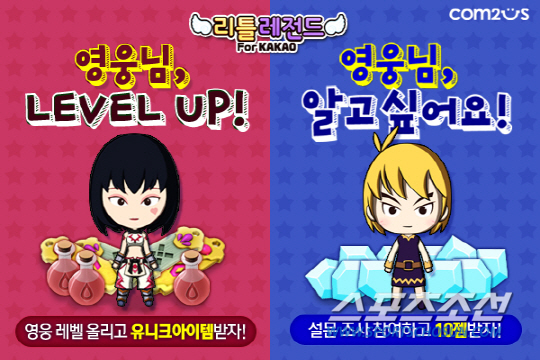 컴투스는 인기 모바일 게임 '블레이드 러쉬 for Kakao'와 '리틀레전드 for Kakao'에서 게임 유저들에게 게임 머니, 유니크 아이템 등을 선물하는 '콤보 러쉬 이벤트', '영웅 레벨업 이벤트', '설문 조사 이벤트' 등을 시작한다고 31일 밝혔다.