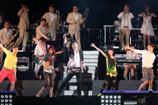 이문세는 1일 조용필 콘서트 현장과 약 6㎞ 떨어진 잠실주경기장에서 대형 콘서트 '대.한.민.국 이문세'를 열었다.