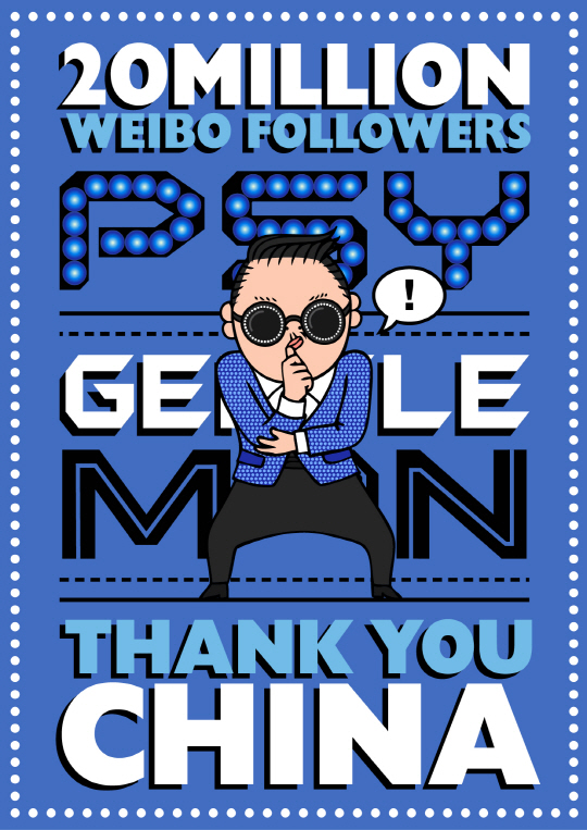 싸이는 지난해 11월 공식 웨이보 계정을 개설하자마자 폭발적인 반응을 얻으며 기록 행진을 이어 나갔다. 올해 2월 한국 아티스트 중 최다 팔로워 수를 기록했으며, 이어 4월에는 1400만 팔로워를 돌파하며 비중화권 스타로는 가장 많은 팔로워 수를 보유한 것으로 나타나 눈길을 끌었다.
