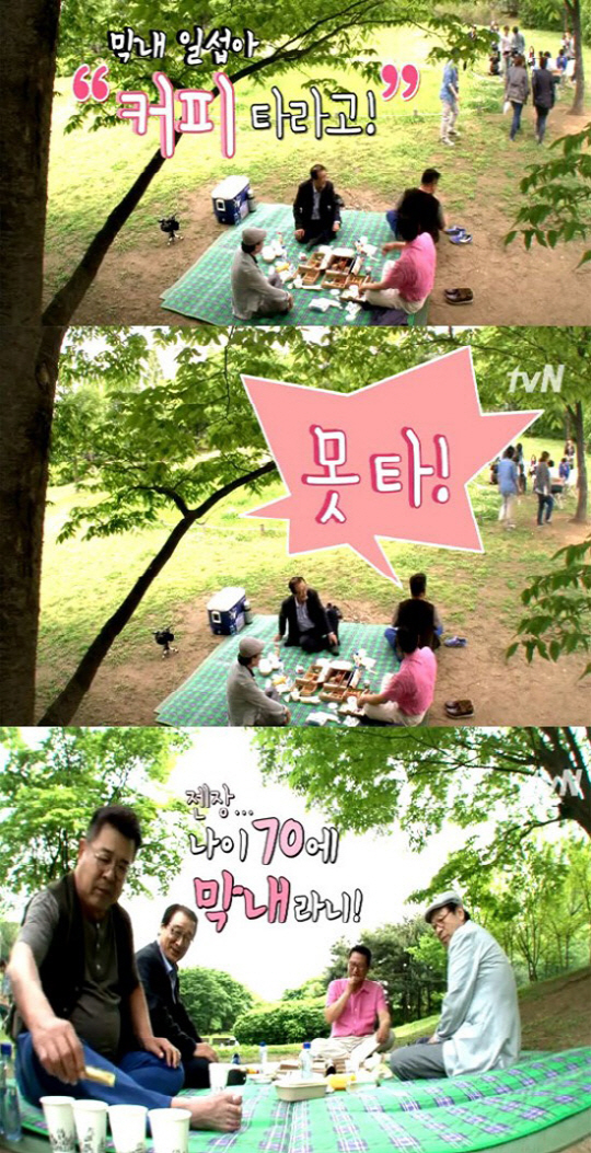 특히 커피를 타라는 형님들의 지시에 "나보고 타라고? 못 타!"라고 앙탈(?)을 부리다 결국 종이컵 4개에 조용히 믹스커피를 타는 '70세 막내' 백일섭의 모습이 웃음을 자아낸다.