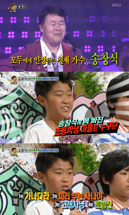 이날 스튜디오에 모습을 드러낸 아들은 "노래가 흥미롭고 멋있다. 호기심을 자극한다"며 송창식의 노래를 좋아하는 이유를 밝혔다. 이어 송창식의 노래 중 마음에 드는 노래가 무엇이냐는 질문에 "1위는 '가나다라', 2위는 '피리 부는 사나이', 3위는 '고래사냥', 4위는'토함산'이다"라며 술술 답했다. 또한 아들은 "어릴 때 둘리에서 '가나다라'를 들었는데 그때부터 듣게 됐다"며 둘리에게 고마움을 전해 웃음을 자아냈다.