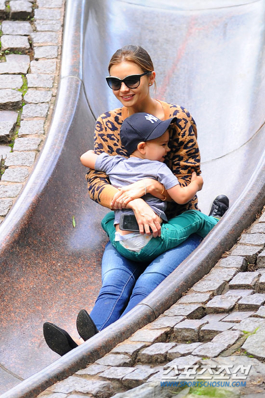 블랙 선글라스에 레오파드 티셔츠와 청바지를 입을 수수한 패션을 선보인 미란다 커는 플린을 꼭 안은 채 미끄럼틀도 함께 타며 다정한 엄마의 모습을 선보였다. 특히 엄마 미란다 커의 품에 안겨 해맑은 미소를 짓고 있는 플린의 통통하고 깜찍한 외모가 시선을 모았다.