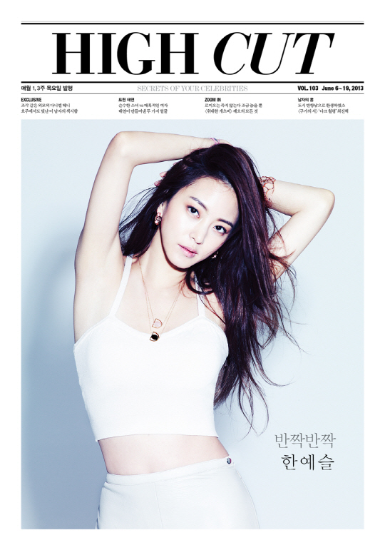 한예슬의 이번 화보는 6월 6일 발간되는 '하이컷' 103호를 통해 만날 수 있으며, 화보의 미공개 컷들은 하이컷 온라인(www.highcut.co.kr)에서 확인할 수 있다. 또한 아이패드용 애플 앱스토어에서 발행되는 '하이컷' 디지털 매거진 애플리케이션을 통해서 지면에 다 담지 못한 생동감 넘치는 화보와 영상을 무료로 감상할 수 있다. '하이컷'은 전국 주요 도시 가판 및 편의점, 교보문고, 반디앤루니스, 영풍문고 전 지점에서 구입할 수 있다.