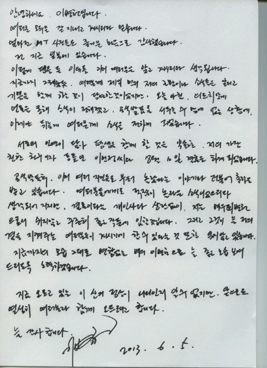 배우 이병헌(43)이 이민정(31)과의 결혼에 대해 팬들에게 장문의 자필 편지로 심경을 전했다.
