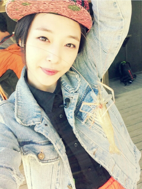사진 속 설리는 환한 미소를 지은 채 낚시줄에 매달린 새우를 자랑하듯 번쩍 들어 올린 후 사진 촬영에 여념이 없는 모습이다. 청자켓에 검은색 셔츠를 입고 편안한 복장을 선보인 설리는 힙합 모자로 한층 업그레이드된 '귀요미' 매력을 뽐냈다.