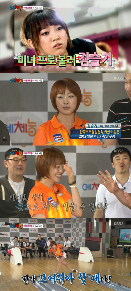 4일 방송된 KBS 2TV '우리동네 예체능'에서는 지난 경기에서 참패한 예체능팀을 돕기 위해 미녀 프로볼러 김슬기 선수가 투입됐다.