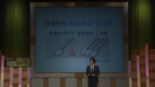 종합편성채널 TV조선 의학정보토크쇼 '홍혜걸의 닥터콘서트'가 소금 중독에서 벗어나는 방법을 소개한다.