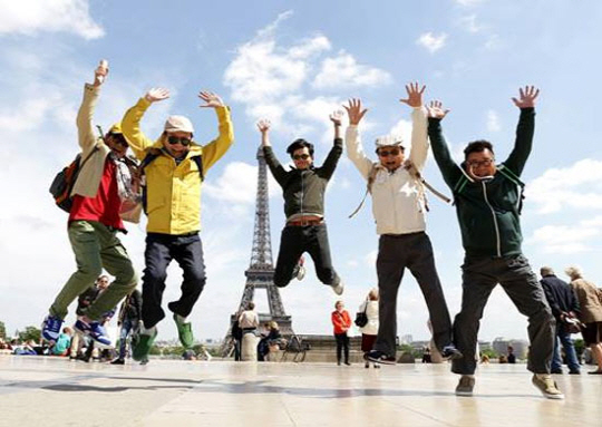 프랑스 파리 배낭여행을 떠난 '꽃할배' H4의 나이를 잊은 점프샷이 공개돼 화제다.