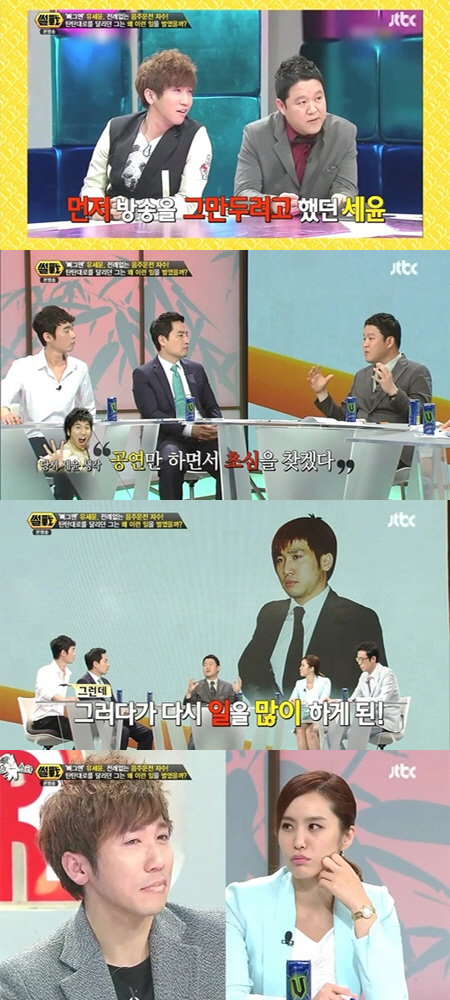 이날 김구라는 "유세윤이 너무 쉼 없이 달려오며 여러 프로그램을 맡아 이제 쉬고 싶다며 공연을 통해서 초심을 찾고 싶다고 말했다"며 "그러다가 내가 하차하게 됐다"고 설명했다.