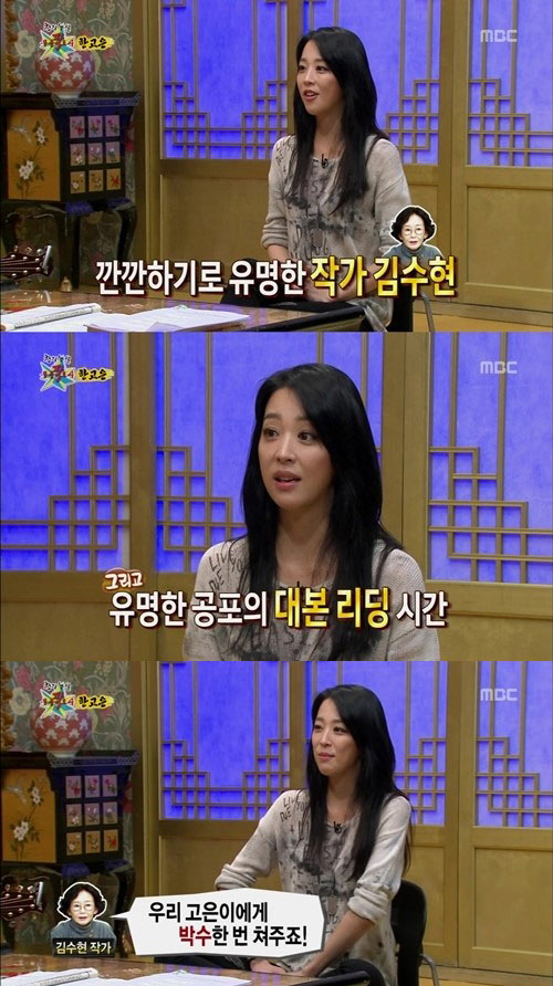한고은은 지난 6일 방송된 MBC '황금어장-무릎팍도사'에서 지난 2006년 방영된 SBS 드라마 '사랑과 야망'을 작업하면서 김수현 작가로부터 박수를 받은 적이 있다고 이야기했다.