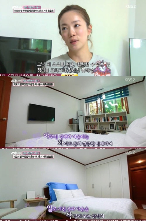 박은영 아나운서는 7일 오전 방송된 KBS 2TV '여유만만'에서 부모님과 함께 살고 있는 집을 공개했다.