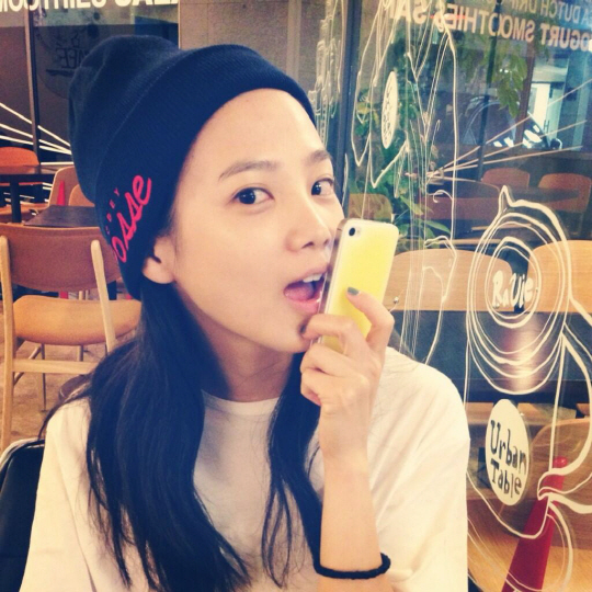 사진 속 윤승아는 긴 머리를 풀어헤친 채 검은색 비니 모자를 쓰고 카메라를 응시중인 모습이다. 이어 노란색 휴대폰 케이스를 선물 받아 자랑하려는 듯 휴대폰을 들고 입을 살짝 벌린 채 '귀요미' 표정을 짓고 있어 시선을 끌었다. 또 하얀색 티셔츠를 입은 윤승아는 화장기 없는 민낯으로 잡티 없는 피부를 과시하며 청순미를 뽐냈다.