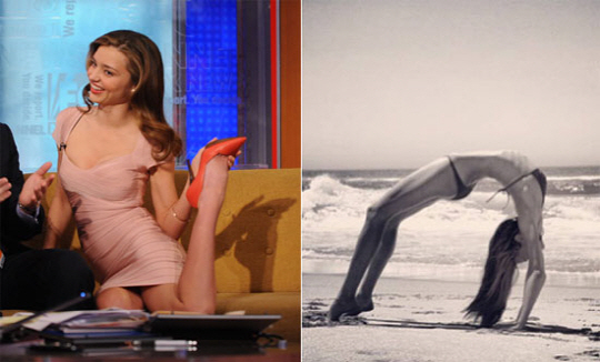 세계적인 톱모델 미란다 커가 타이트한 드레스를 입고 요가 동작을 선보여 눈길을 끌었다.