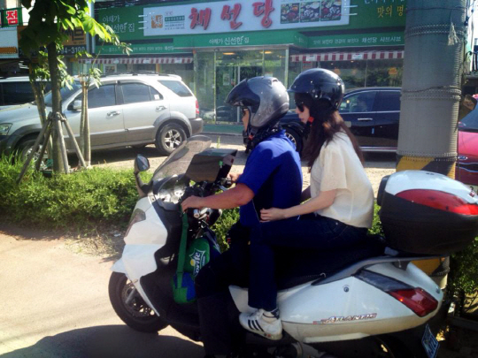 특히 선글라스로 패션을 질을 높인 요조는 약간 긴장한 듯 무표정한 표정을 지은 채 퀵 아저씨를 꽉 잡고 '귀요미' 표정을 짓고 있어 네티즌들의 시선을 끌었다.