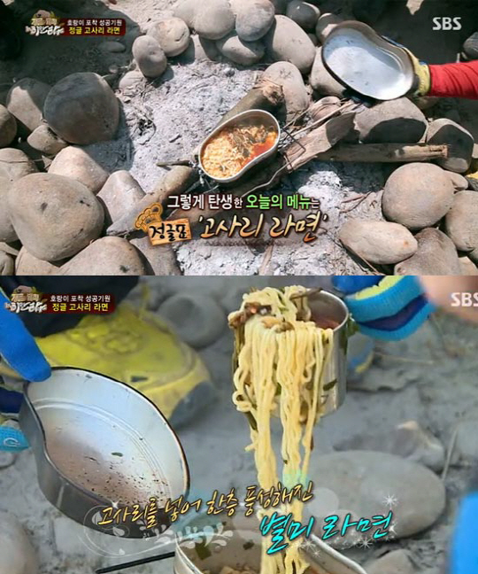 이날 방송에서 정준이 코뿔소를 찍은 영상을 대가로 병만족은 제작진으로 부터 라면 두개를 획득했다. 짬뽕라면과 우동라면을 섞은 오구리 라면을 선보인 병만족이 틈틈이 따놨던 고사리를 라면에 넣어 정글표 '고사리라면'을 공개했다. 고사리나물을 물에 깨끗이 씻어준 뒤 살짝 데친 후, 햇볕에 말린 고사리를 음식을 넣어주면 끝.