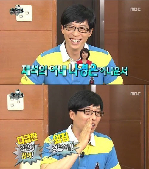 '국민 MC' 유재석이 아내 나경은과 전화연결에 당황하는 모습을 보여 눈길을 끌었다.