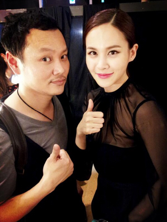 공개된 사진에서 김민교는 아이비와 함께 입가에 미소를 머금은 채 카메라 정면을 응시하고 있다.