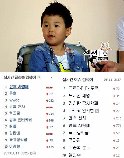 이에 네티즌들은 자발적으로 '윤후 사랑해' '윤후 천사'를 검색하는 등 윤후 지키기에 나섰으며, 그 결과 11일 오후까지 '윤후 사랑해' '윤후'라는 단어가 포털사이트 상위권에 랭크되며 네티즌들의 강력한 힘을 보여줬다.