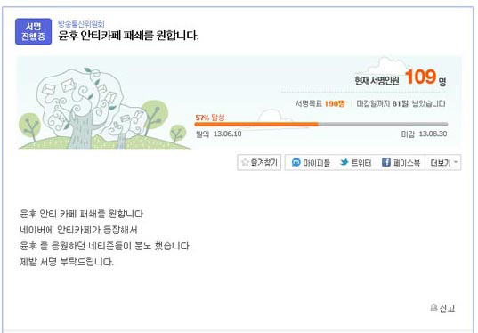 현재 두 게시물의에는 네티즌들은 163명이 서명운동에 참여했다.