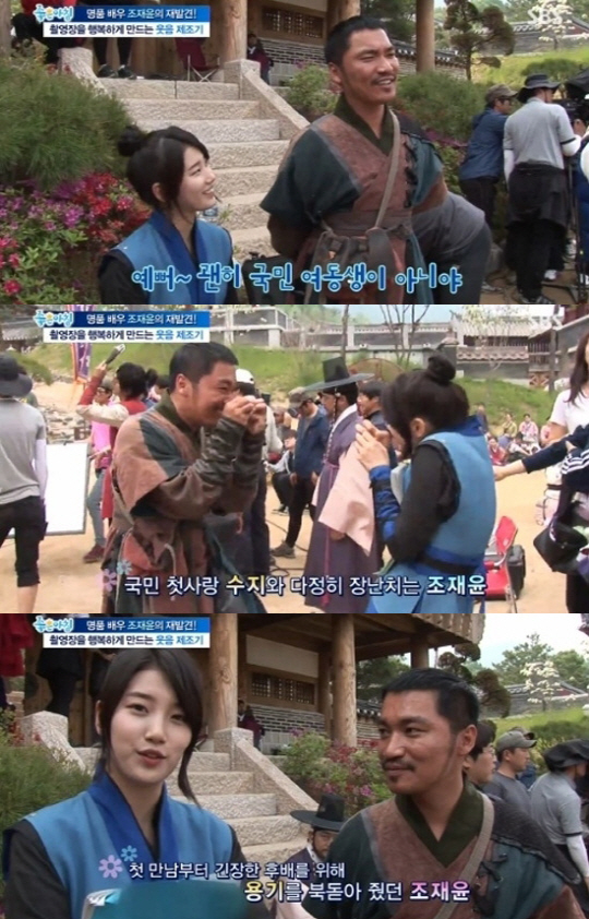 이날 방송에서 조재윤은 드라마에 함께 출연 중인 국민 첫사랑 수지와 장난을 치는 다정한 모습이 전파를 탔다. 그는 "예쁘다. 괜히 국민 여동생이 아니다"며 수지를 극찬, 시선을 끌었다.