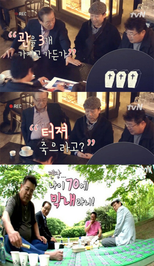 또 이순재는 나영석 PD가 "스카이다이빙, 이건 힘드시겠죠?"라고 묻자 "그건 관을 3개 가지고 가든가"라고 말해 스태프들을 박장대소케 했다.
