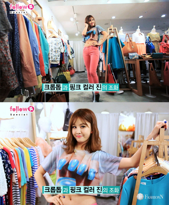 박은지가 케이블TV 패션앤의 새 프로그램 '팔로우미 스페셜'에서 한줌 허리를 공개해 눈길을 사로잡았다. 사진제공=티캐스트