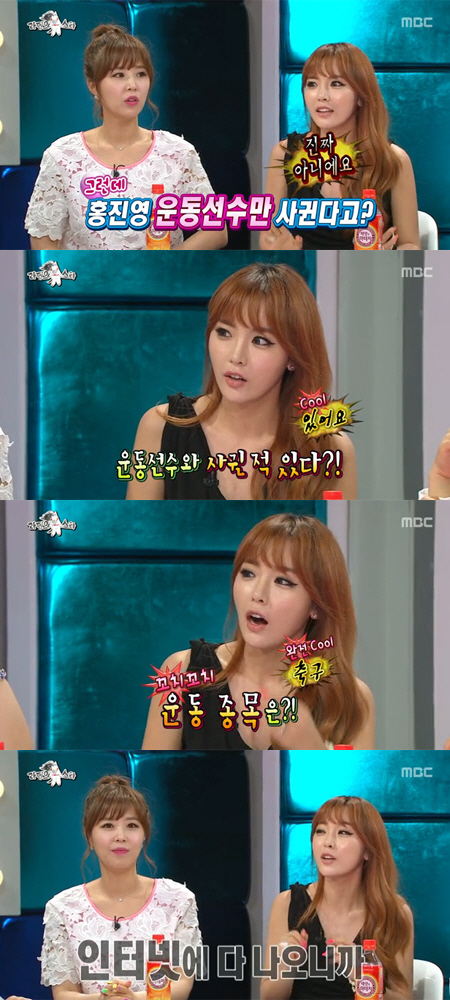 이어 MC 윤종신은 "어떤 종목의 선수와 사귀었냐?"고 물었고, 홍진영은 "축구다. 그건 인터넷에 치면 다 나온다"라고 솔직하게 답했다.