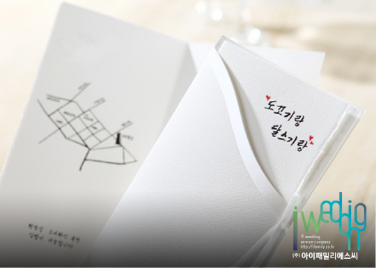 두 사람은 오는 28일 오후 1시 서울 여의도 63빌딩에서 웨딩 마치를 울린다. 13일 공개된 청첩장에는 이미 알려진 것처럼 청첩장 카드 전면과 카드 안쪽에 약도, 인사말까지 모두 손으로 써서 제작 되었다.