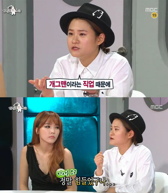 이에 MC김구라는 "'세바퀴' 나올 때 구석에 앉아서 힘들어하는 게 보였다. 그런데 녹화가 잘 안 풀려 김신영을 재촉해 웃음을 유도하면 그 다음에 김신영 표정이 안좋더라"며 당시의 김신영의 모습을 회상했다.