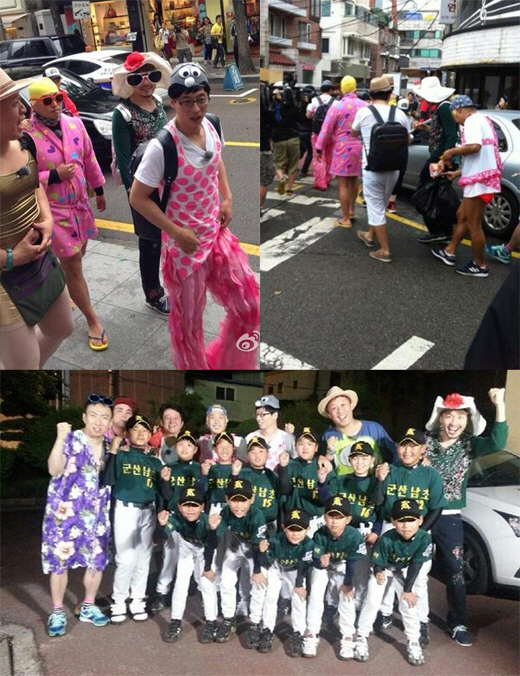 13일 온라인 커뮤니티와 SNS상에는 '무한도전' 멤버들이 화려한 의상을 입고 신사동 거리를 걷고 있는 사진 여러 장이 게재됐다.