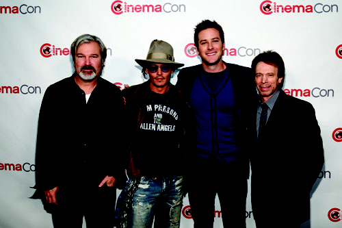 LAS VEGAS, NV - APRIL 17: (L-R) Director Gore Verbinski, actor Johnny Depp, actor Armie Hammer and producer Jerry Bruckheimer arrive at The Walt Disney Studios Motion Pictures presentation to promote their upcoming film, 'The Lone Ranger' at Caesars Palace during CinemaCon, the official convention of the National Association of Theatre Owners on April 17, 2013 in Las Vegas, Nevada. (Photo by Isaac Brekken/WireImage) *** Local Caption *** Gore Verbinski; Johnny Depp; Armie Hammer; Jerry Bruckheimer