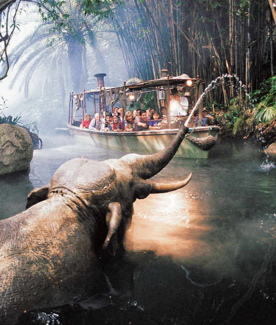 JUNGLE CRUISE -- Disneyland park guests board a trusty tramp steamer for a 7-minute guided tour of jungles from around the world, brimming with exotic animals and lush tropical foliage