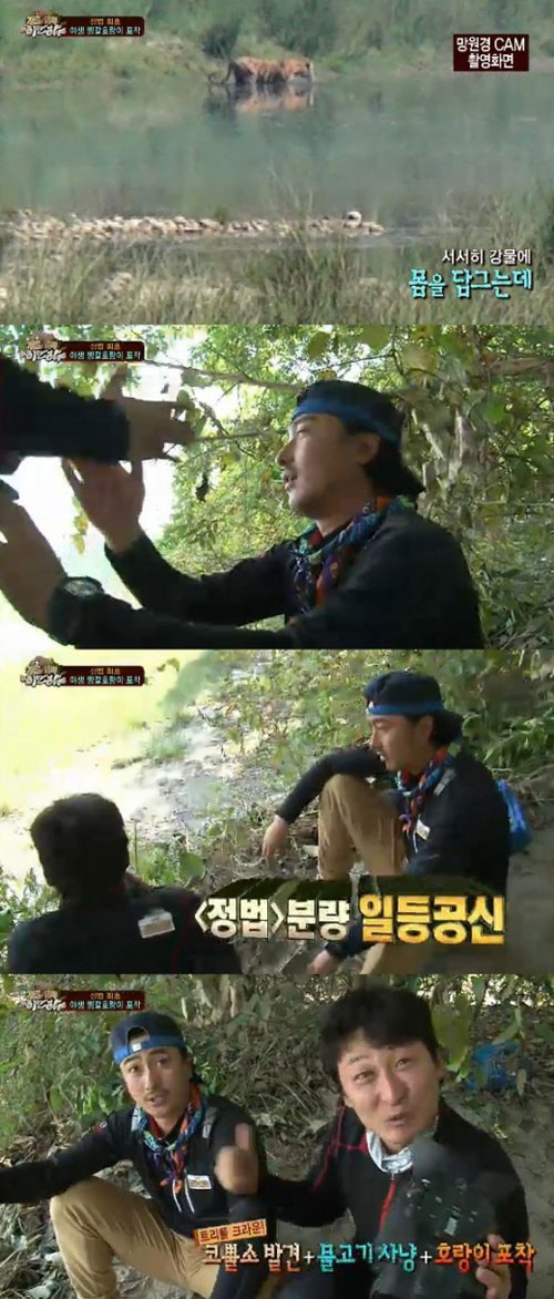 이날 안정환과 노우진은 자리를 잡고 앉아 망원경 카메라로 쳐다보며 호랑이를 기다렸다.