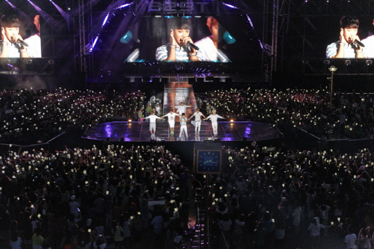 또 '아름다운 밤이야'를 시작으로 '쇼크', '픽션' 등 히트곡 퍼레이드로 분위기를 뜨겁게 달궜다. 이어 컴백을 기다려준 팬들에 대한 감사의 마음을 담아 준비한 '뷰티파티'에 대한 이야기와 컴백 심경 등을 담은 음성 편지를 공개, 팬들을 감동시켰다.
