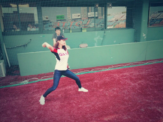 배우 홍이주가 시구 연습 사진을 공개해 화제다.