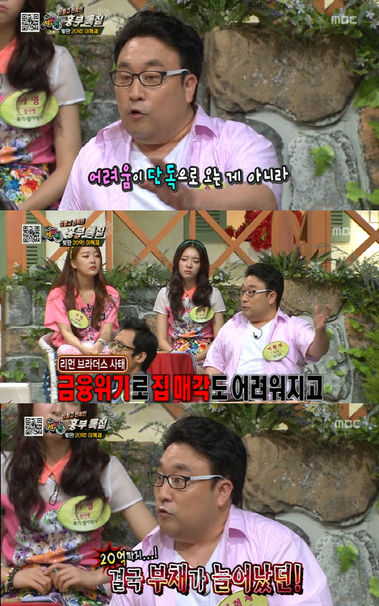 이어 그는 "생활고 때문에 아내가 아이 돌반지를 팔고 부도 때 보험도 해약했다"고 덧붙여 좌중을 숙연케 했다.