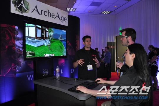 엑스엘게임즈도 현재 퍼블리셔인 트라이온 부스를 통해 MMORPG '아키에이지'를 선보였다. 올해 국내에서 출시된 게임 가운데 최대작인 '아키에이지' 역시 현지 반응이 뜨겁다. '자유도'가 높다는 것에 높은 점수를 주고 있다. 엑스엘게임즈 김정한 이사는 "빠르면 올해 미국을 시작으로 내년까지 유럽에서 서비스할 예정이다. 북미와 유럽 유저들의 기대감이 상당하다"고 말했다.