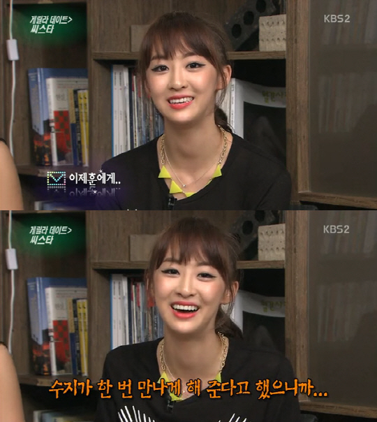 이에 김태진은 씨스타가 만나고 싶은 스타를 묻자 다솜은 "이상형은 군대에 있고 성은 이씨다"고 입을 열자, 멤버들은 바로 "이제훈씨"라고 밝혔다.