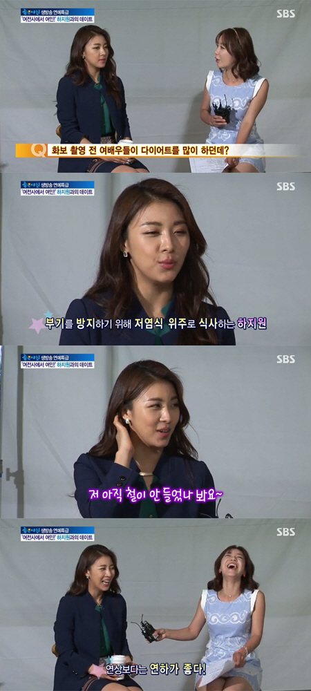 이날 하지원은 "여배우들은 화보 촬영 전 급 다이어트 하기 마련인데 걱정 안 하느냐"는 리포터의 질문에 "며칠 굶는 다이어트는 못 한다"고 답했다.